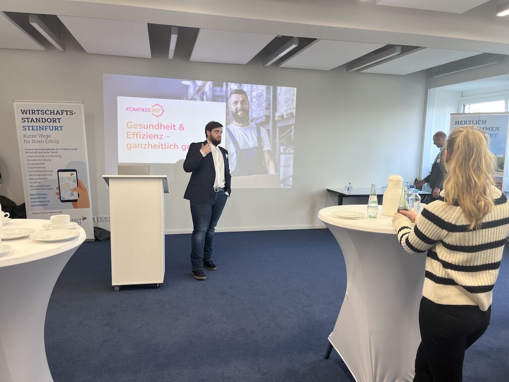 - Kompass360Grad stellte ein datenbasiertes Modell vor, mit dem ergonomische Risiken und Produktivitätspotenziale in Industrie- und Logistikunternehmen identifiziert werden. Das Start-up wird unter anderem im Rahmen des REACH-Programms begleitet und ist bereits erfolgreich am Markt etabliert.