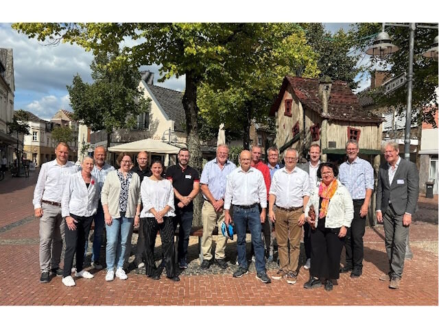 Bei bestem Spätsommerwetter besuchte Landrat Dr. Martin Sommer die Kreisstadt Steinfurt – begleitet von seinen Dezernenten sowie weiteren Kolleginnen und Kollegen der Kreisverwaltung. Begrüßt wurde die Delegation herzlich im Rathaus von Bürgermeisterin Claudia Bögel-Hoyer.