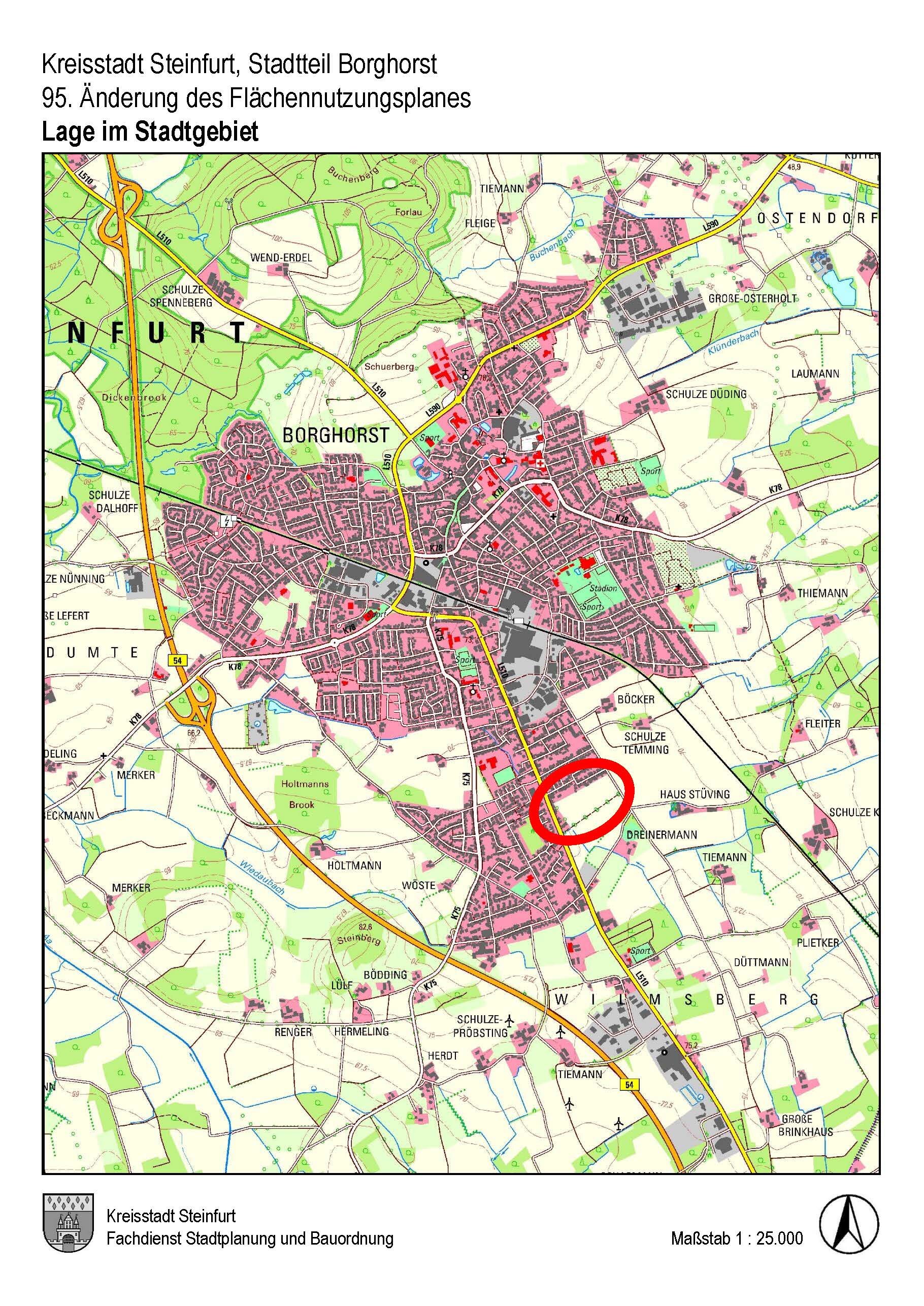 FNP - 95. Änderung des Flächennutzungsplanes im Bereich des Bebauungsplanes Nr. 38a "nördlich Piggenweg" der Kreisstadt Steinfurt, Stadtteil Borghorst